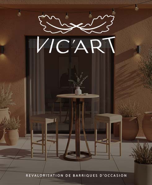 De cette réflexion sur le surcyclage sont nés deux univers produits : Vicard Home et Vic’Art. Vicard Home représente l’expression premium de notre savoir-faire mobilier, à travers des créations contemporaines en chêne neuf massif. Vic’Art, quant à lui, valorise le réemploi de douelles de barriques et propose une approche plus authentique.