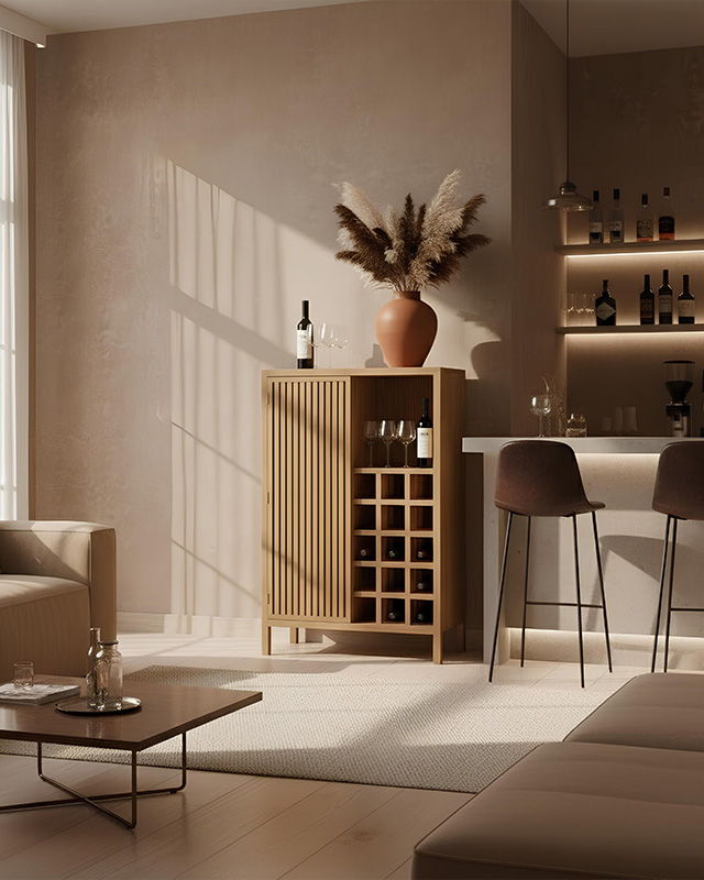 Issus de chênes sélectionnés avec le même soin que celui destiné à la tonnellerie, ces bois trouvent une nouvelle expression à travers des créations de mobilier contemporaines. Chaque pièce est unique et révèle la chaleur, la densité et la noblesse de la matière, pour s’inscrire naturellement dans un art de vivre raffiné.