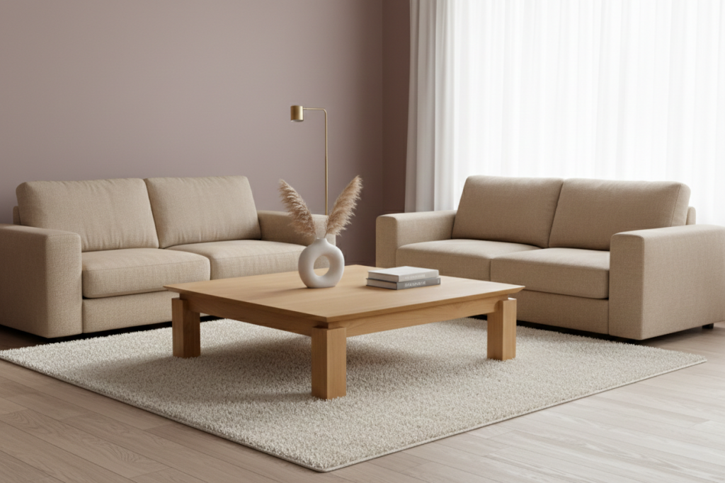 Le bois massif réagit aux variations de température et d’humidité. Évitez l’exposition directe et prolongée aux rayons UV ou aux sources de chaleur intense (radiateurs, cheminée, baie vitrée…) afin de prévenir les mouvements naturels du bois massif.